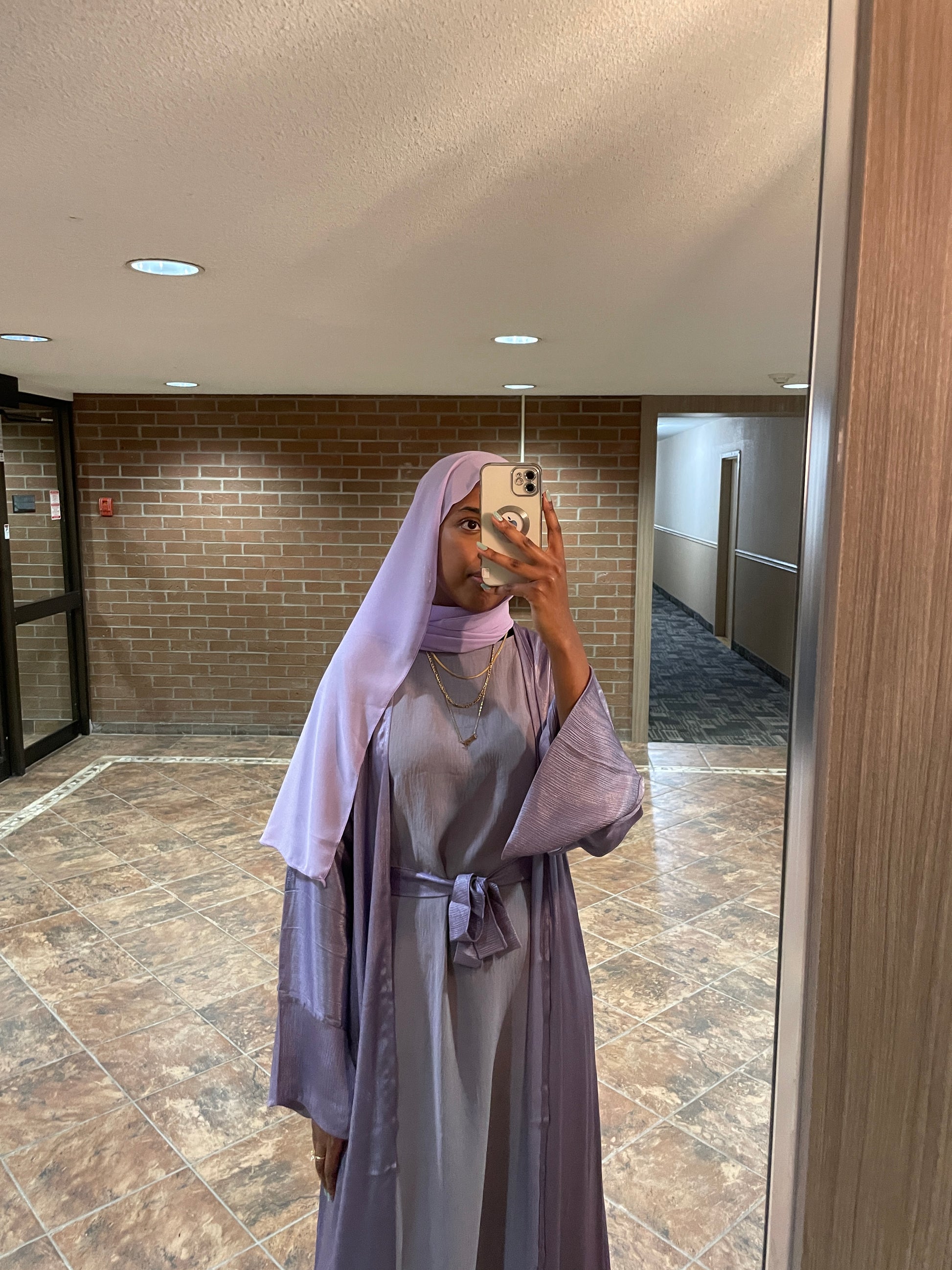 Our beautiful luxurious tima abaya comes with a matching hijab, belt, underdress.